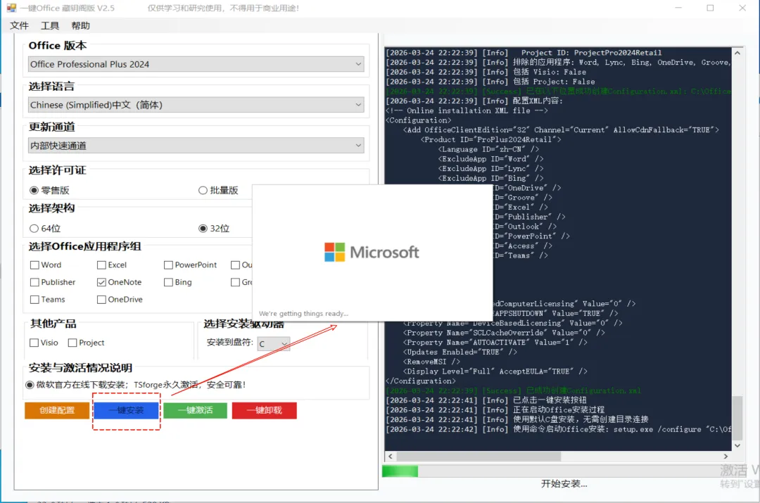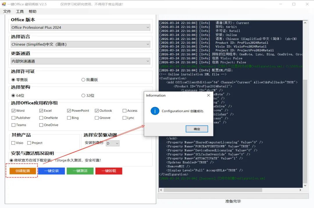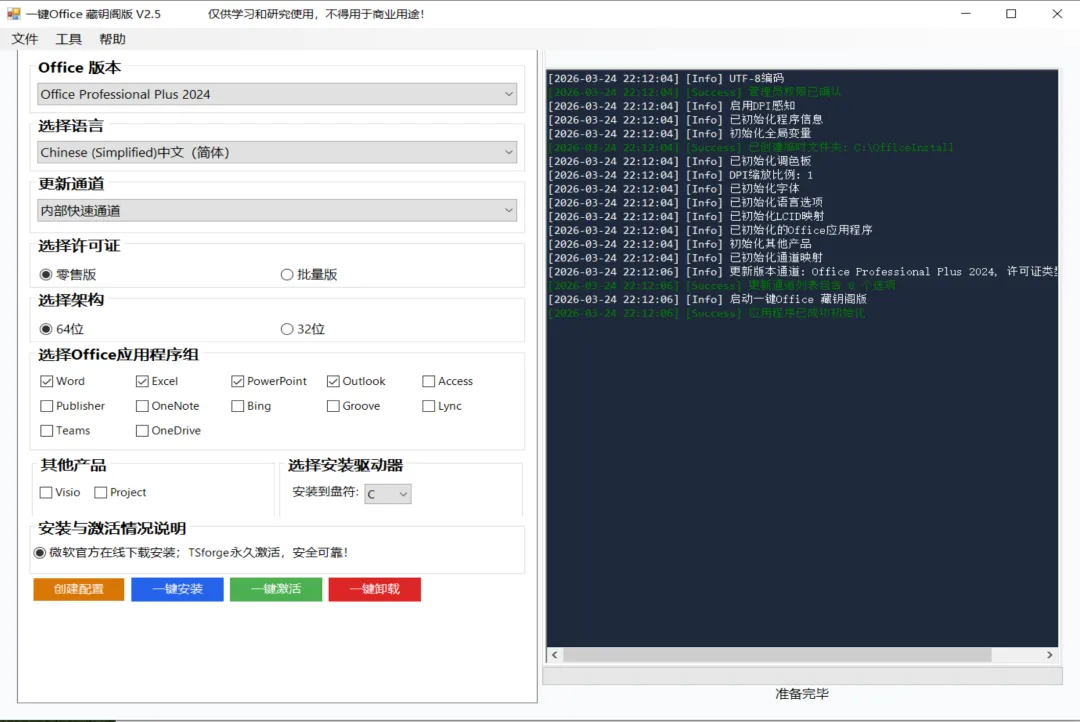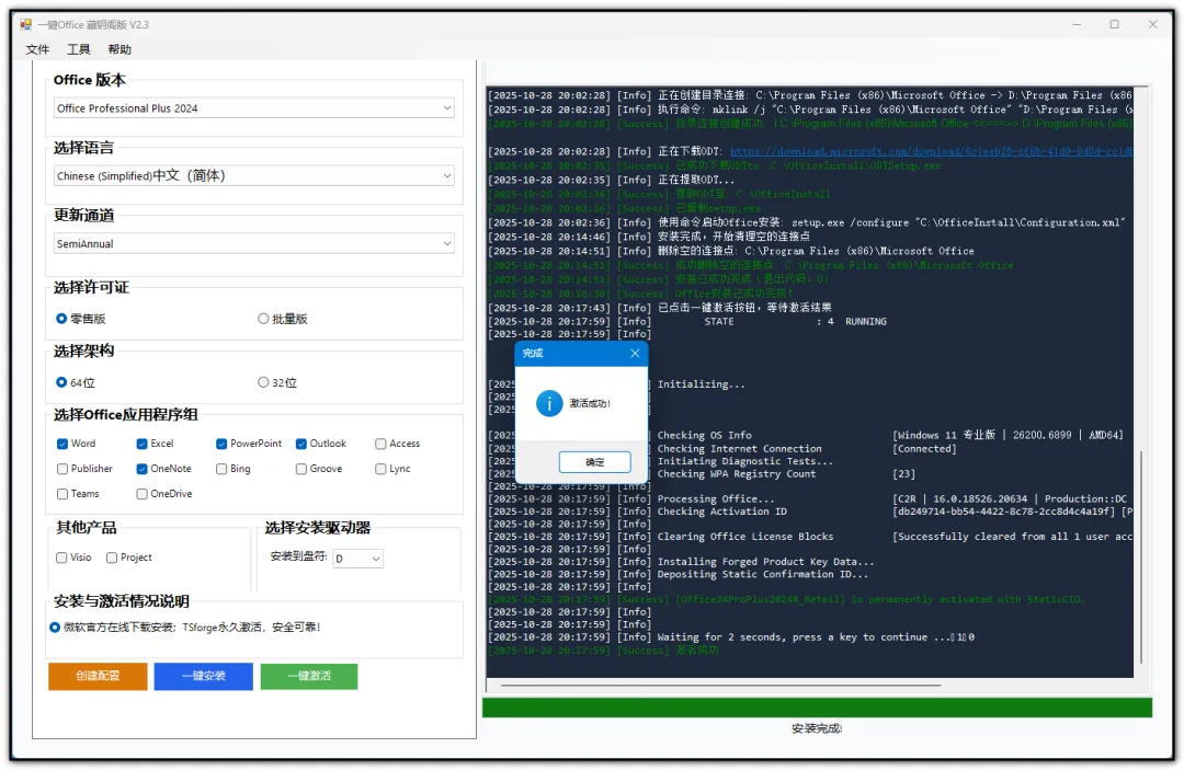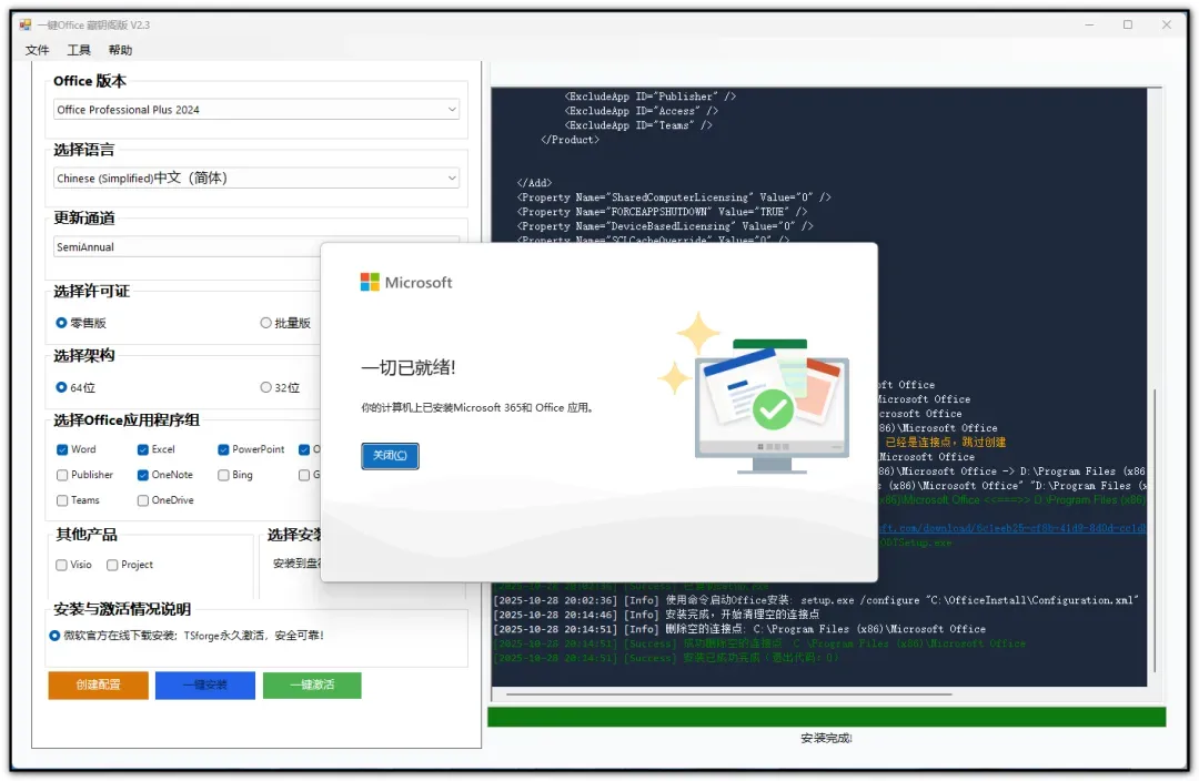 此工具提供了从 2016 到 2024 的所有版本以及 Office365,都可以一键激活,可以收藏备用!