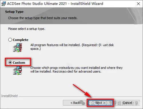 3.点击“Next” ![]() 4.选择I accept the terms in the license agreement,点击“Next” ![]() 5.选择Custom,点击“Next” ![]() 6.选择软件安装路径,点击“Next” ![]() 7.点击“Next” ![]() 8.点击“Install” ![]() 9.软件正在安装,请耐心等待