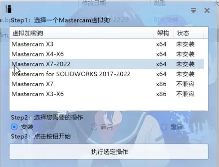 17、点Mastercam X7-2022,然后点执行选定操作,出现如下图界面点好的