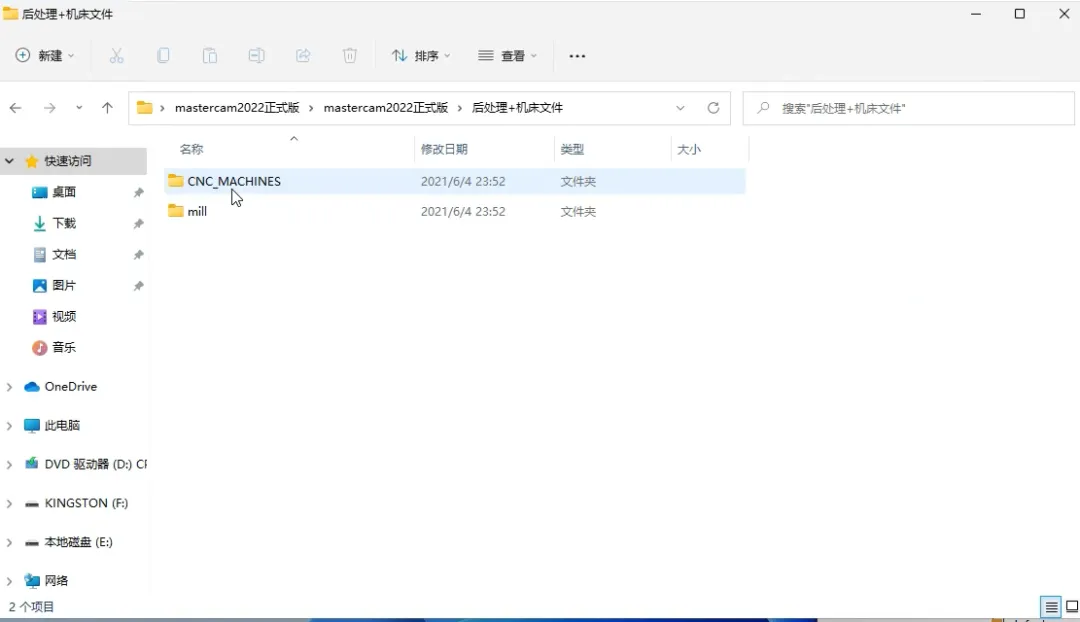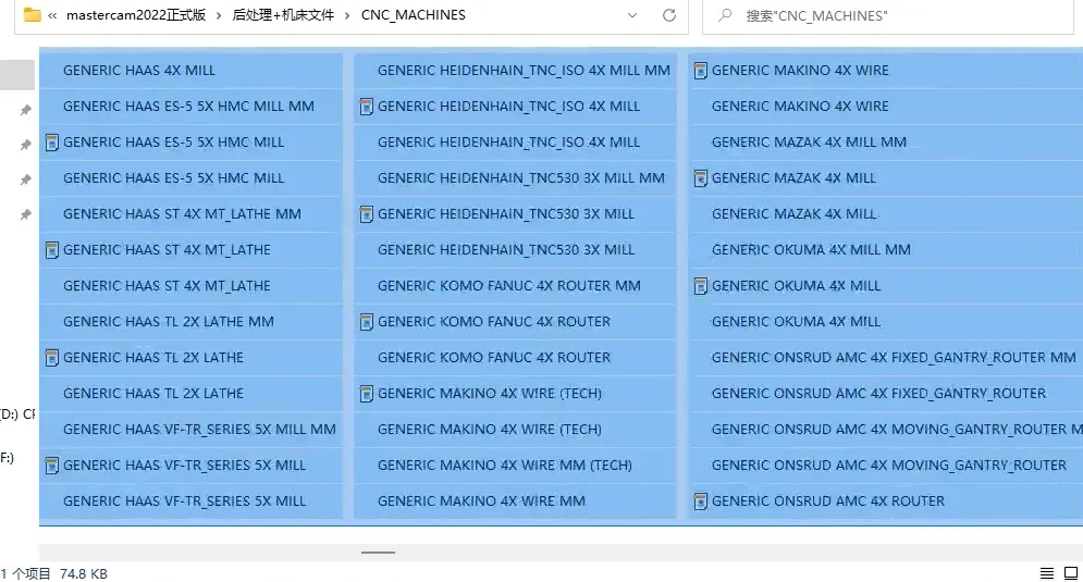 34、返回到刚开始解压出来的安装包,然后找到后处理+机床文件夹打开,复制里面的所有文件