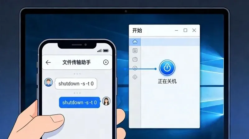 发送:关机 → 电脑自动关机