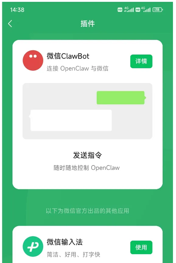 ▲ 微信ClawBot插件