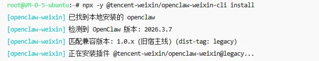 npx -y @tencent-weixin/openclaw-weixin-cli install然后安装程序会自动检查你的小龙虾版本,并进行对应的安装