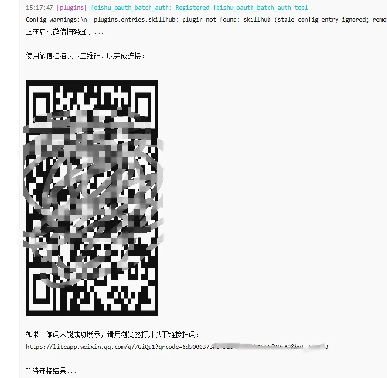 过了一会仍然是出来一个二维码,和刚才一样扫完点连接!