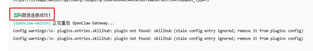 连接好以后终端会如下图所示出现与微信连接成功!