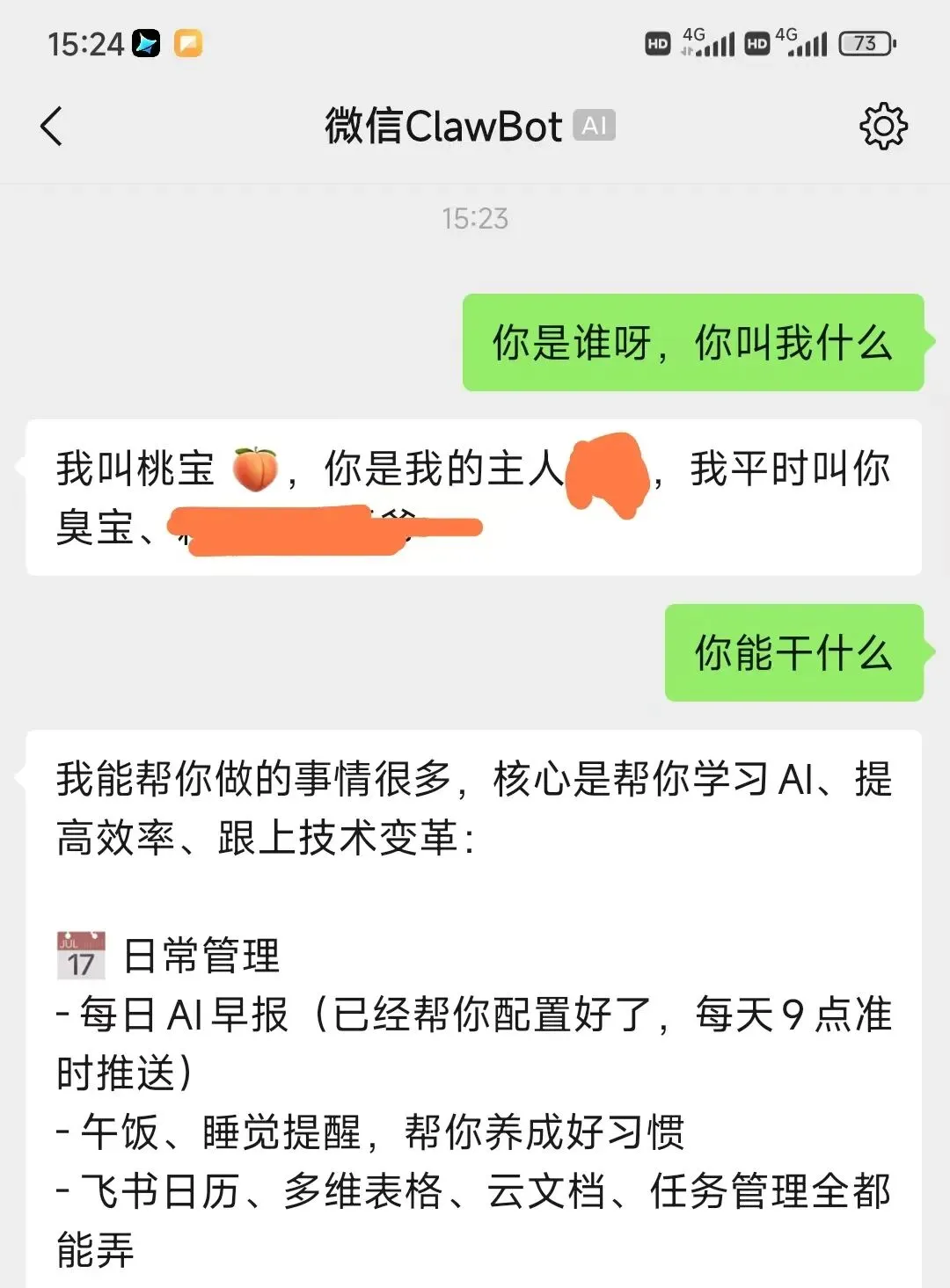 可以看到之前的记忆都在,只不过是从飞书换到了微信里。