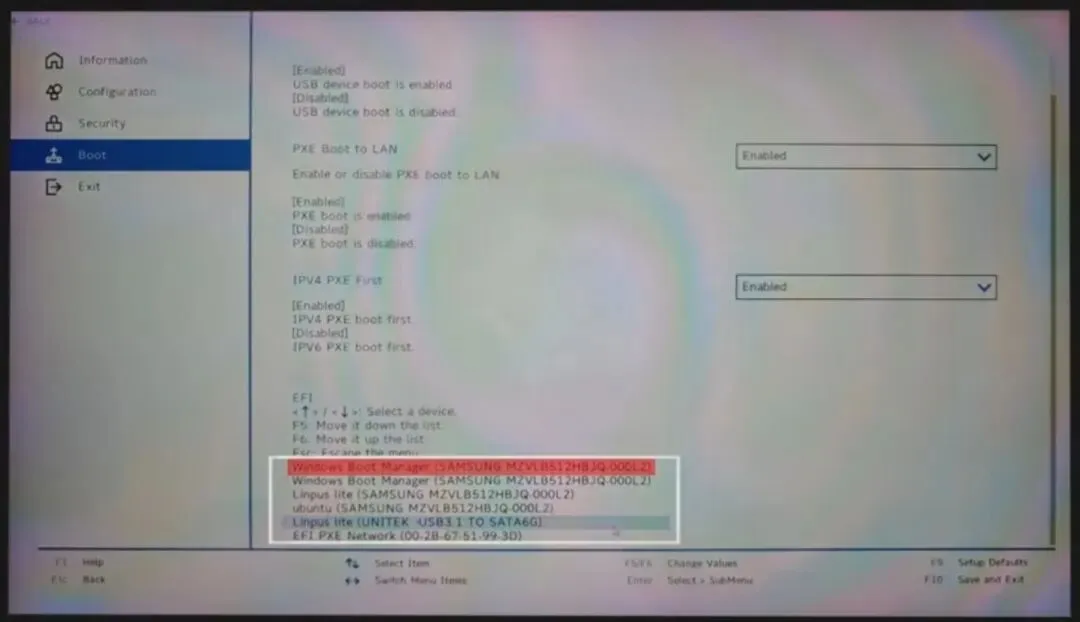 那么,我们该如何设置引导程序的启动顺序呢?当我们开机时快速连续点击对应的快捷键之后,我们便可以进入到UEFI程序的管理界面。不同电脑品牌的快捷键可能会有所不同,常见的快捷键有F2 delete、ESC键等。
