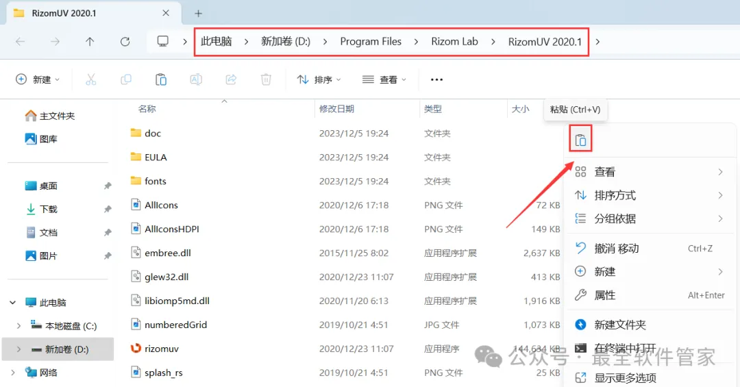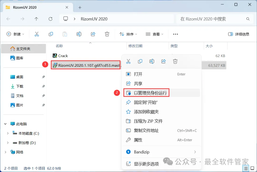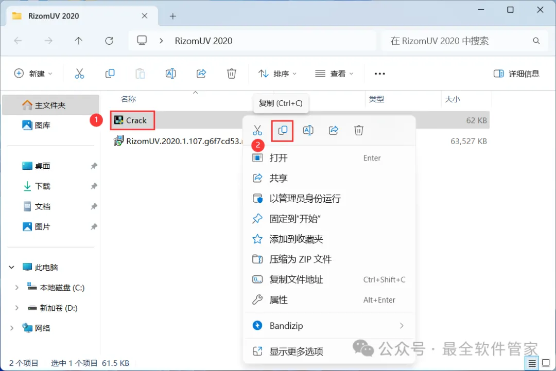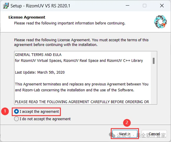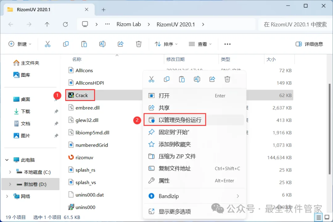 [不限速下载]:免费获取百度网盘不限速下载工具。公众号内回复:不限速[注意事项]:安装前请关闭网络、杀毒软件和防火墙,否则易安装失败。公众号内回复:1[解压软件]:小编用的解压软件是Bandizip,获取Bandizip软件安装包。公众号内回复:21、下载RizomUV 2020软件安装包到电脑上,右键选择【解压到RizomUV 2020\】3、找到【RizomUV.2020.1】应用程序,右键选择【以管理员身份运行】它5、软件默认安装在C盘,可自定义更改软件安装位置,这里小编选择安装在D盘;点击【Next】 11、回到RizomUV 2020文件夹,找到【Crack】程序,再右键点击【复制按钮】12、回到桌面,右键桌面上的【RizomUV VS RS 2020.1软件图标】,点击【打开文件所在的位置】 14、找到粘贴的【Crack】程序,再右键选择【以管理员身份运行】它 19、回到桌面,右键桌面上的【RizomUV VS RS 2020.1软件图标】,点击【打开】21、以上就是RizomUV 2020软件安装的全过程,要是对你有帮助的话,请为小编点个赞!免责声明:软件资源均来源于网络,仅供用户交流学习与研究使用,版权归属原版权方所有,版权争议与本公众号无关,用户本人下载后不能用作商业或非法用途,否则后果均由用户承担责任;如果您访问和下载此文件,表示您同意只将此软件用于参考、学习而非其他用途,否则一切后果请您自行承担,请于下载后24小时内删除,不允许用于商业用途,否则法律问题自行承担。如果您喜欢该软件,请支持正版软件,购买注册,得到更好的正版服务。