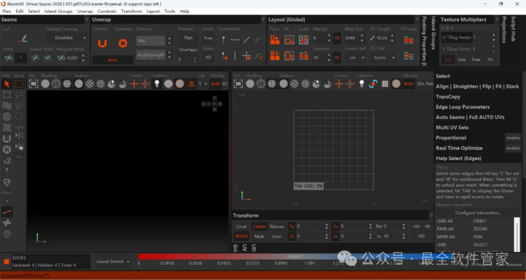 RizomUV 2020是一款三维模型展UV软件,Rizom Lab发布了UV贴图工具Unfold3d最新版本RizomUV Real Space&Virtual Space,现在称为RizomUV,是目前CG软件中比较优秀的展UV软件,凭借其爆破性快速UV展开功能而闻名,新版本更新添加了新的Photoshop样式功能,用于对齐和分布UV岛,自动保存系统以及对选择和纹理像素密度管理工作流程的改进。
