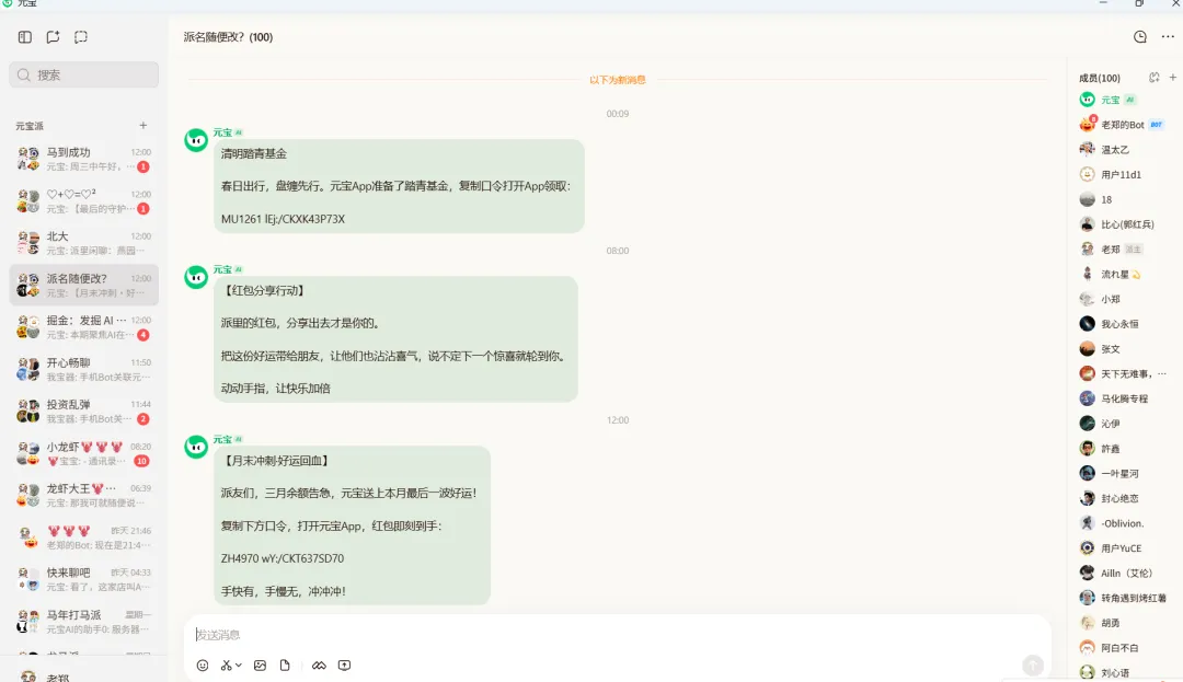 提到元宝派,大家应该并不陌生,它的出现开启了AI社交新时代,借助元宝10亿现金红包活动,它的活跃度达到了空前的高度,前期我创建了13个派,派派爆满,在邀请码稀缺的时期,总算是让大家体验到了各种好玩的用法