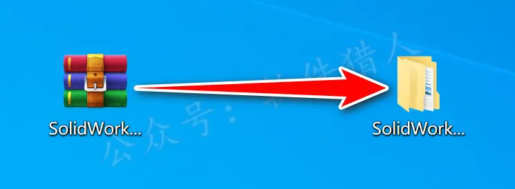 1.关注本公众号后回复“solidworks”,即可获取最新安装教程(页面里附有下载链接,若失效会维护),小编将下载好的压缩包移动到桌面并右键解压到当前位置,方便安装后即将安装包删除。(没有解压软件?点我安装!)
