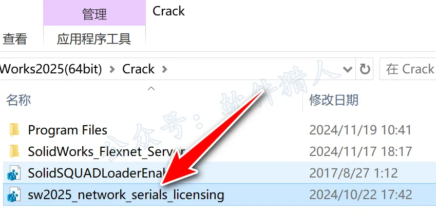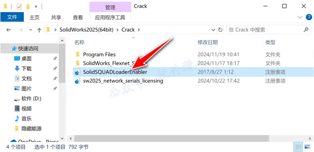 29.回到打开的【SolidWorks2025(64bit)】安装包文件夹下的【Crack】文件夹,双击运行【SolidSQUADLoaderEnabler】。