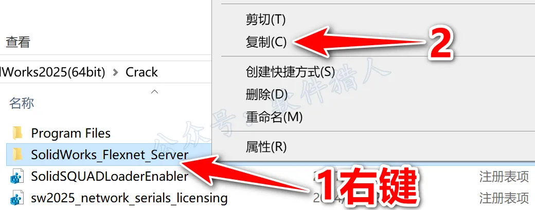 7.鼠标右击该文件夹下的【SolidWorks_Flexnet_Server】文件夹选择【复制】。