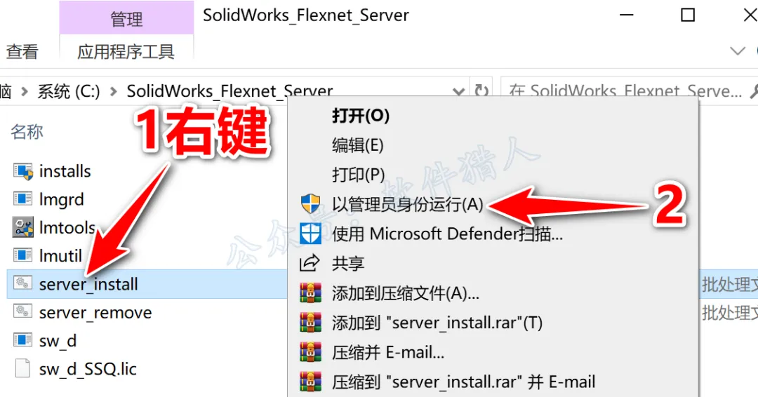 10.鼠标右击【server_install】选择【以管理员身份运行】。