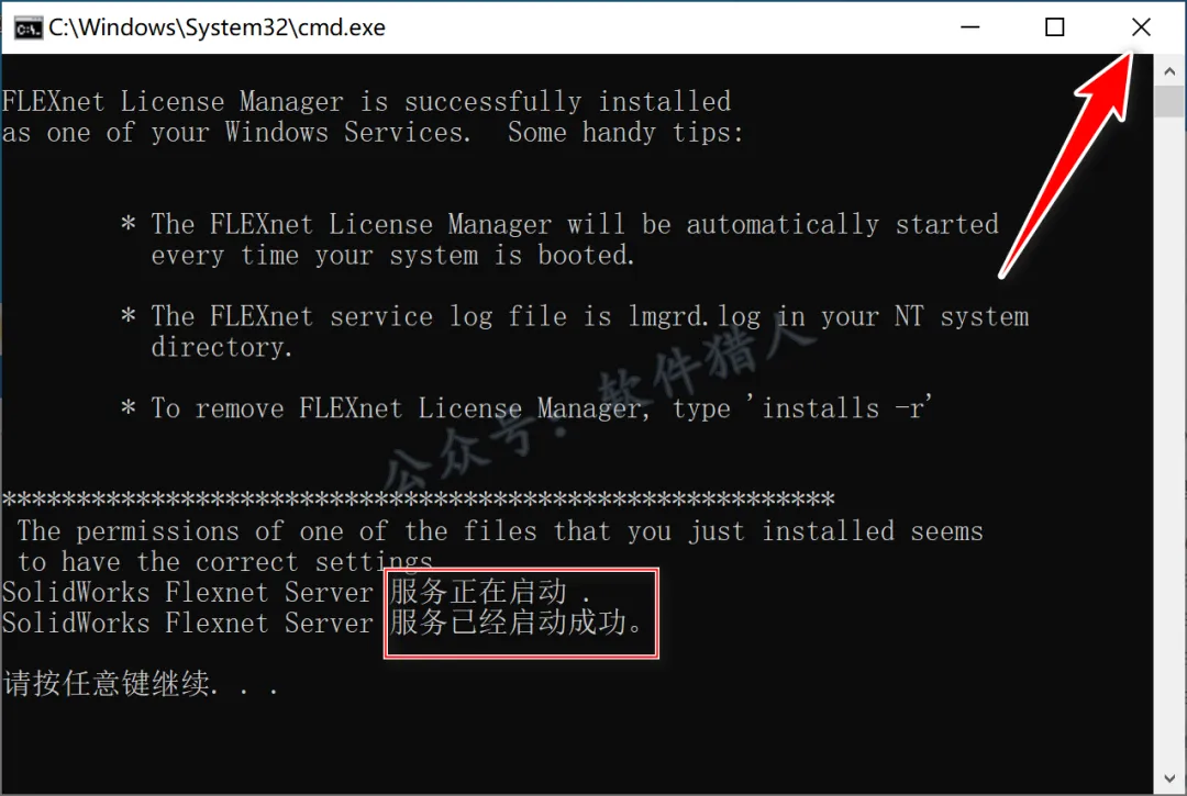 11.界面提示“...启动成功”后点击右上角【X】退出。