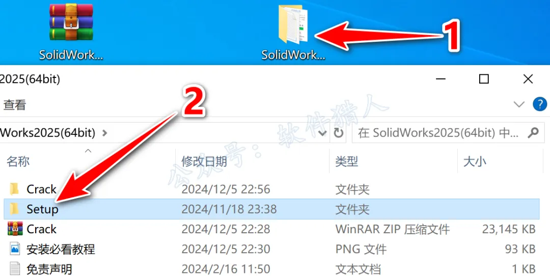 12.回到打开的安装包【SolidWorks2025(64bit)】文件夹,双击打开【Setup】文件夹。
