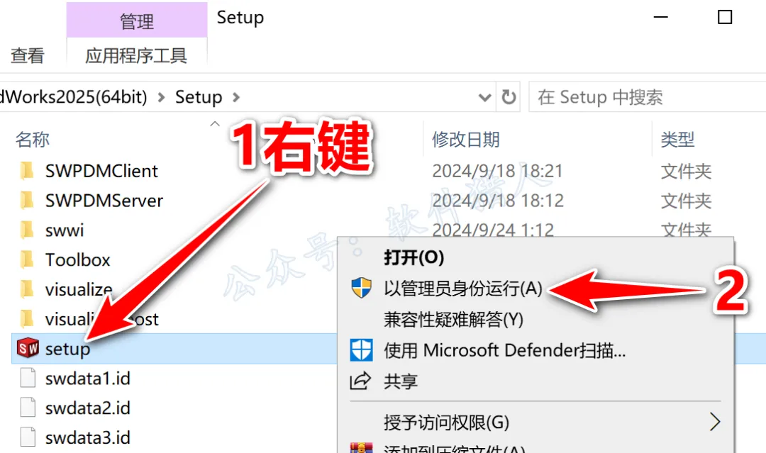 13.鼠标右击【Setup】选择【以管理员身份运行】。
