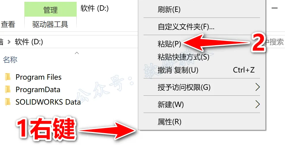 34.打开步骤19修改的磁盘(如:D盘,小编在步骤19将C改为了D),鼠标右击空白处选择【粘贴】。