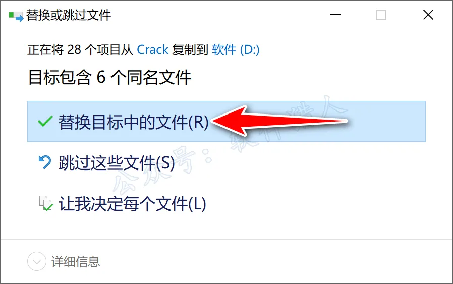 35.点击【替换目标中的文件】。