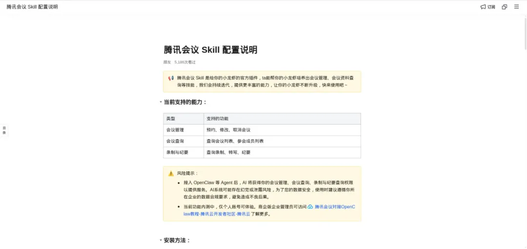 腾讯会议官方对这个 skill 的定位其实说得很直接:它是给你的小龙虾的官方插件,核心能力分三块。