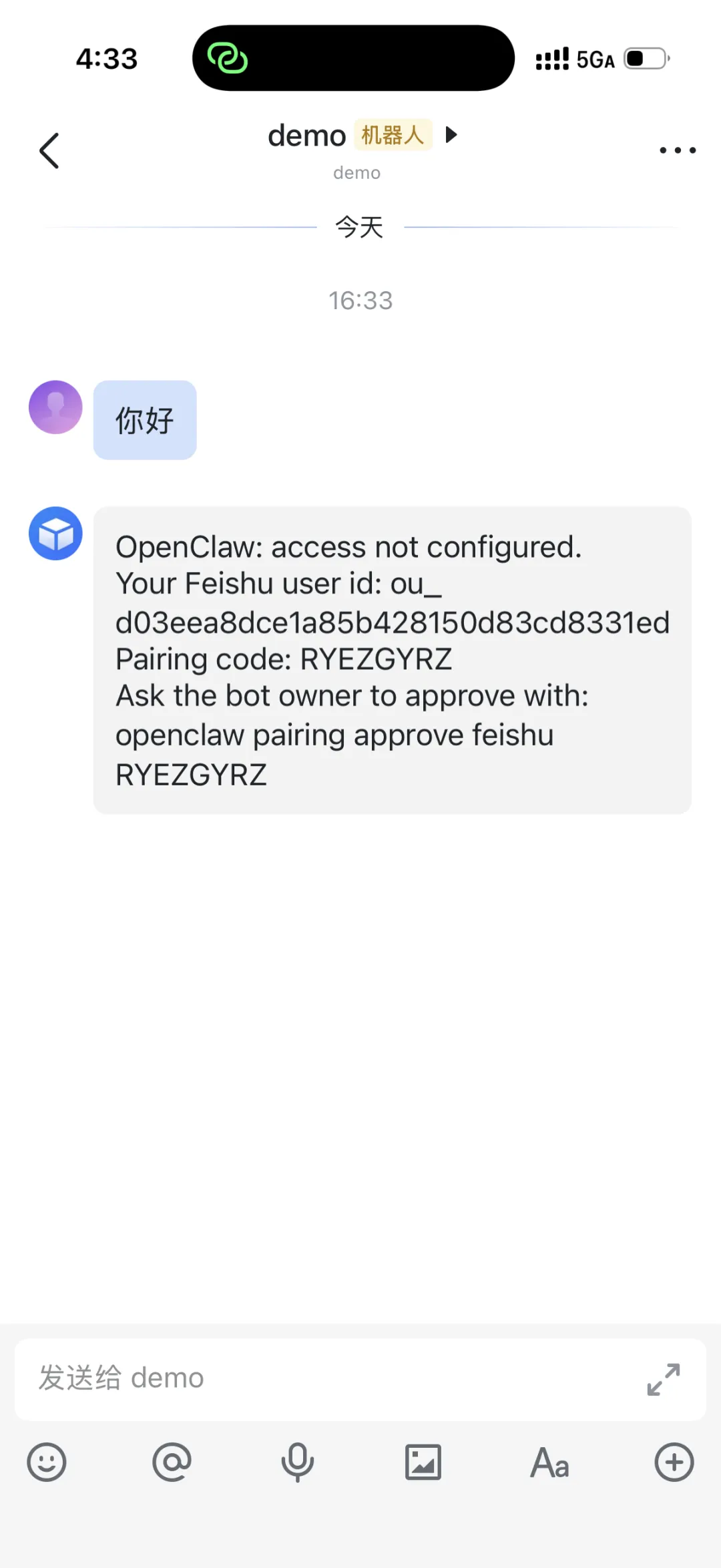 openclaw pairing approve feishu 你的配对码 --notify飞书插件界面: