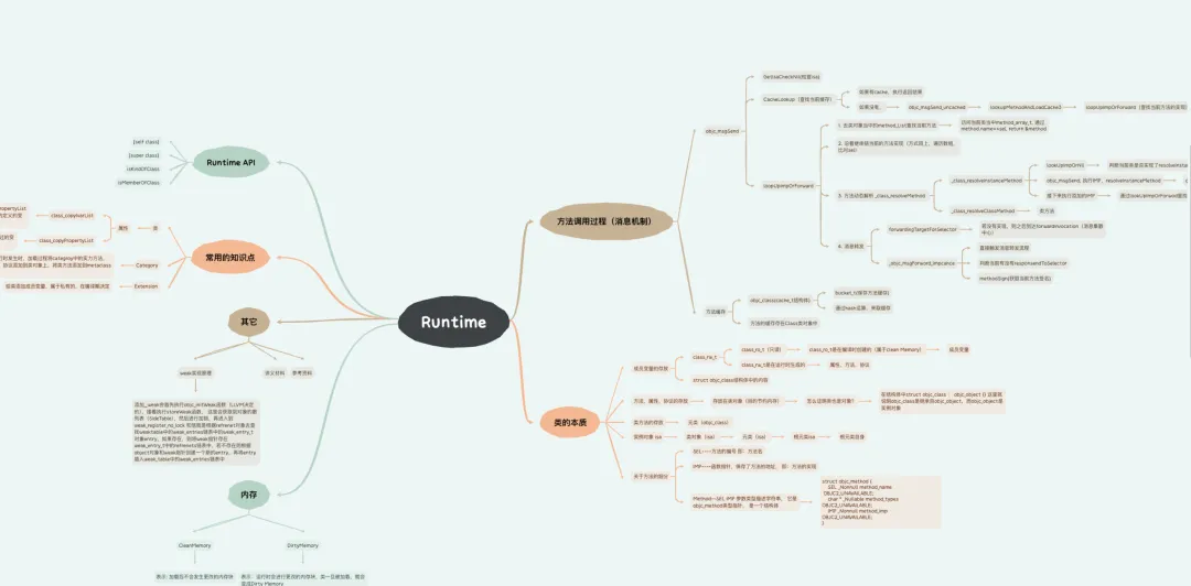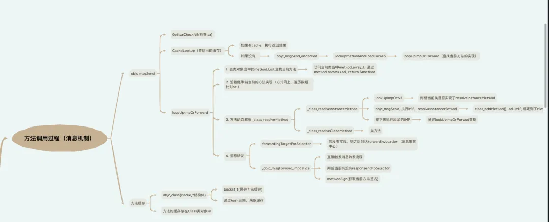 整个方法的调用过程的源码,可以结合Runtime源码,例如方法的查找过程,我整理的结构图,可以对照参考着了解一下。