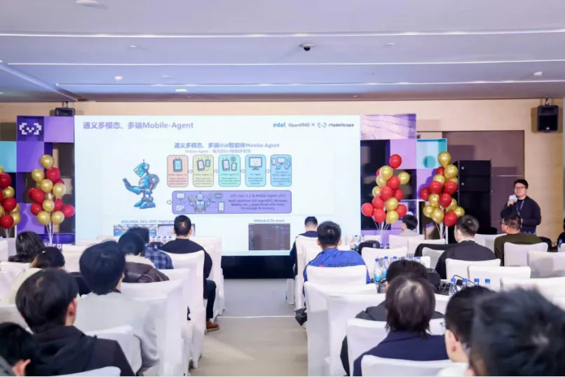 本次活动聚焦英特尔第三代酷睿 Ultra 处理器、AI PC Zone、OpenVINO™ 技术底座、端侧大模型 MiniCPM,以及端侧 mobile agent 智能体方案,构建了一幅从硬件到软件、从模型到应用的全景图。