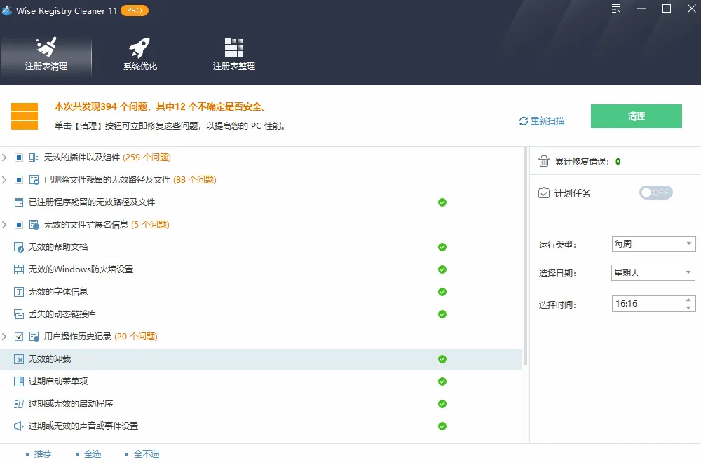 还有一个功能百分之九十的人都不知道,注册表这玩意跟硬盘一样,也是会碎片化的。别的清理工具扫完垃圾就完事了,这个还能帮你把注册表重新整理一遍,把那些空位置都删掉压缩起来。这个功能做完之后的效果是真的能感觉到的,不是那种心理作用,点开软件的速度,双击文件的响应速度,真的会变快很多,特别的神奇。