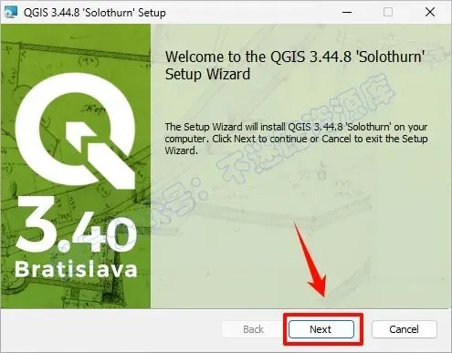 2.打开刚刚解压的文件夹,双击运行“QGIS-OSGeo4W-3.44.8-1.msi”安装程序