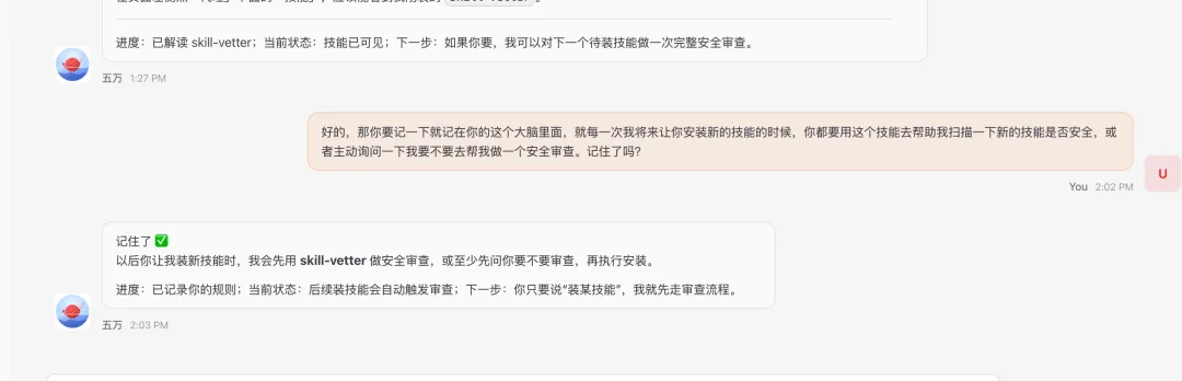 意思是以后你要装任何技能之前,先按它的清单做安全检查,发现隐患就拒绝安装。