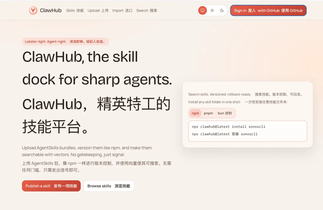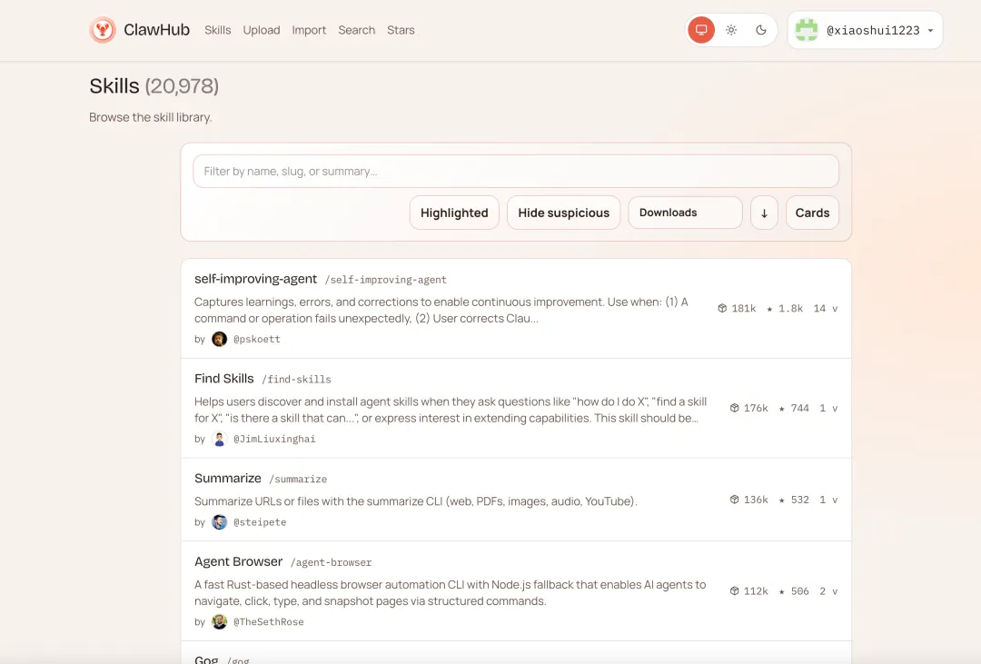 有些高阶技能咱们自己造不出来怎么办?这时候就要去咱们的“补给基地”:ClawHub.ai。那里有全球极客开发的重型武器。记住,去那里不是为了贪多,而是为了寻找那些能帮你解决燃眉之急的专业工具。