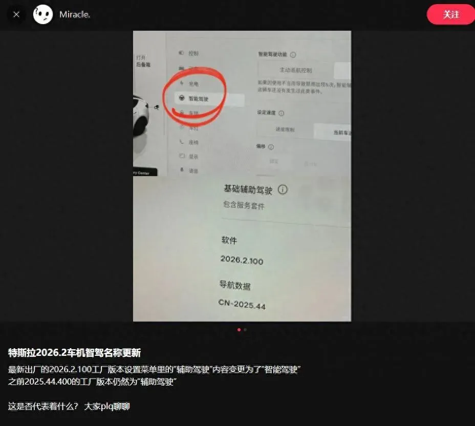 特斯拉车机最近变了。不是加了啥牛逼功能,是名字全换了一遍。我上个月提的车,中控里还叫“辅助驾驶”,朋友上上周提的,点进去已经写成“智能驾驶”了。没人专门通知你,就像某天醒来发现牛奶盒上的字改了,但牛奶还是那个味儿。