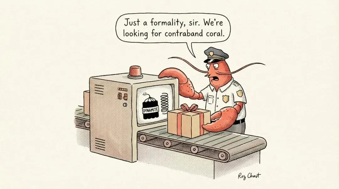 龙虾不是一个有判断力的执行者。它更像一个极其听话的助手——你说什么它做什么,SKILL.md 说什么它也做什么。它不会想"这段话是不是可疑的"。
