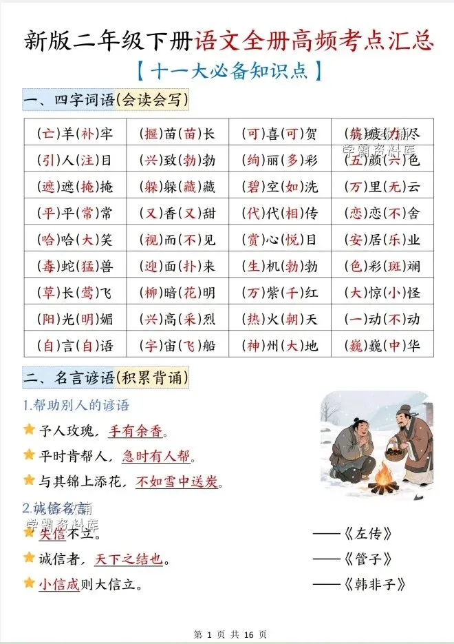 今天给大家整理了26春新版二年级下册语文全册高频考点汇总,转发给朋友或班级群,受益更多人,帮助孩子学习!