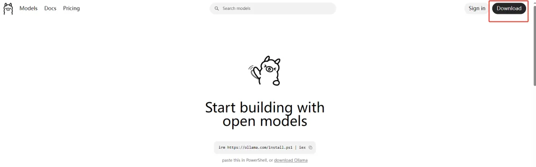 官网地址:https://ollama.com,官网界面是一只可爱的羊驼~~