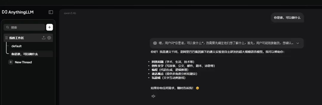 至此,一个完整的本地AI系统就搭建完成了。整个过程无需一行代码,全是复制粘贴的"喂饭级"操作。