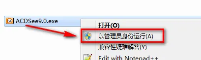 2.选中ACDSee9.0,鼠标右击选择“以管理员身份运行”