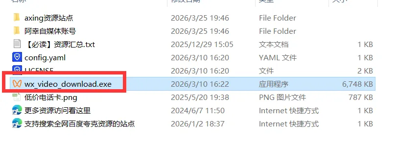 软件下载解压之后双击运行【wx_video_download.exe】