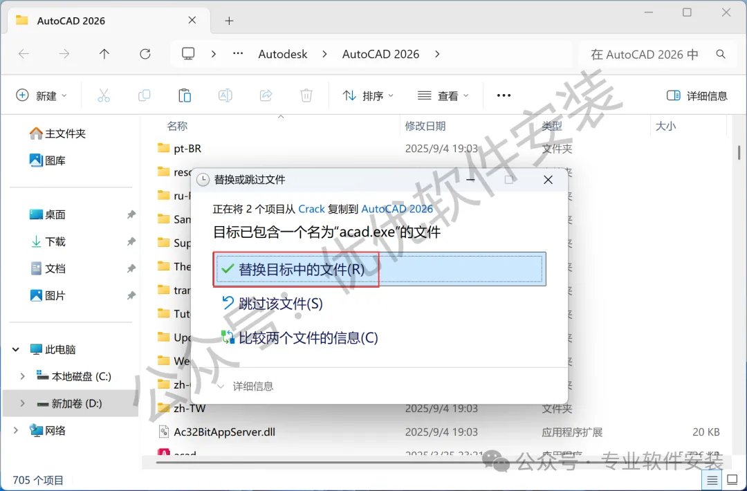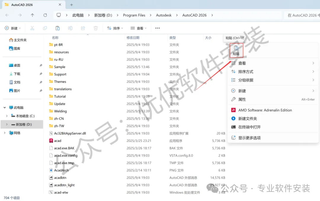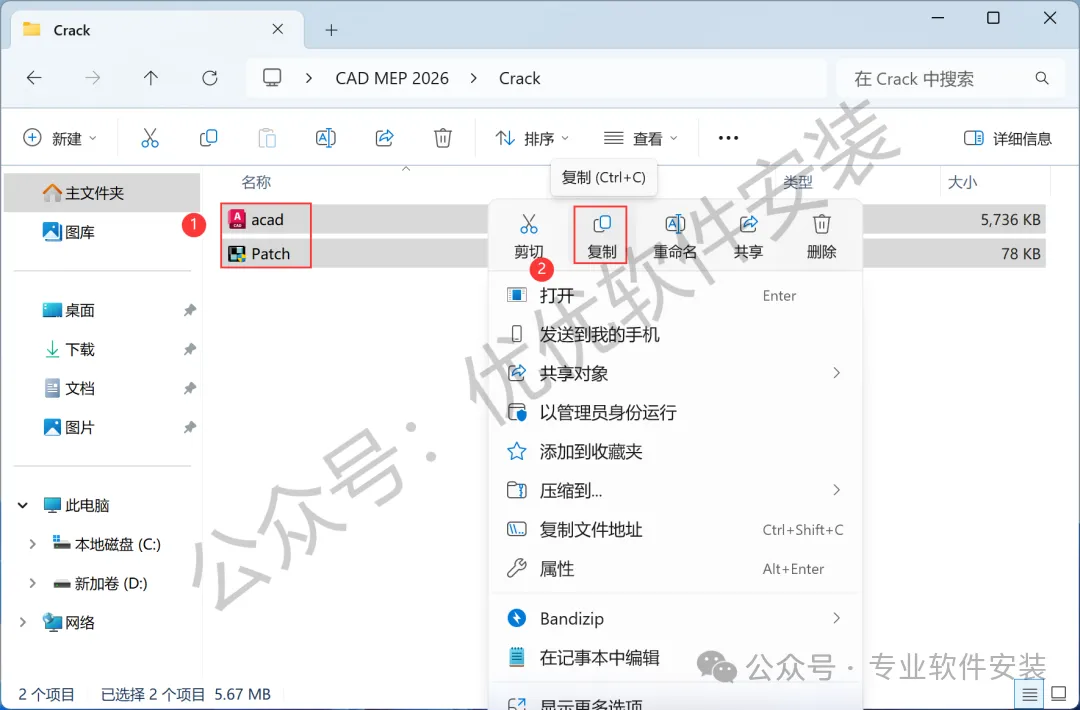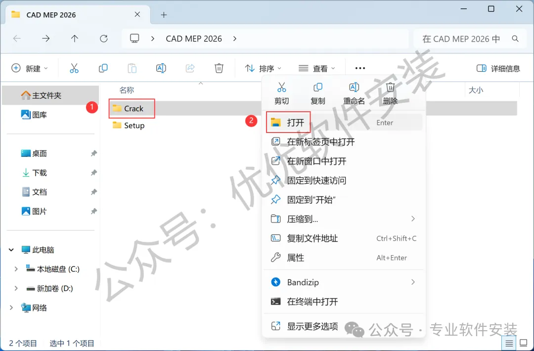 9、回到CAD MEP 2026文件夹,找到【Crack】文件夹,右键【打开】它