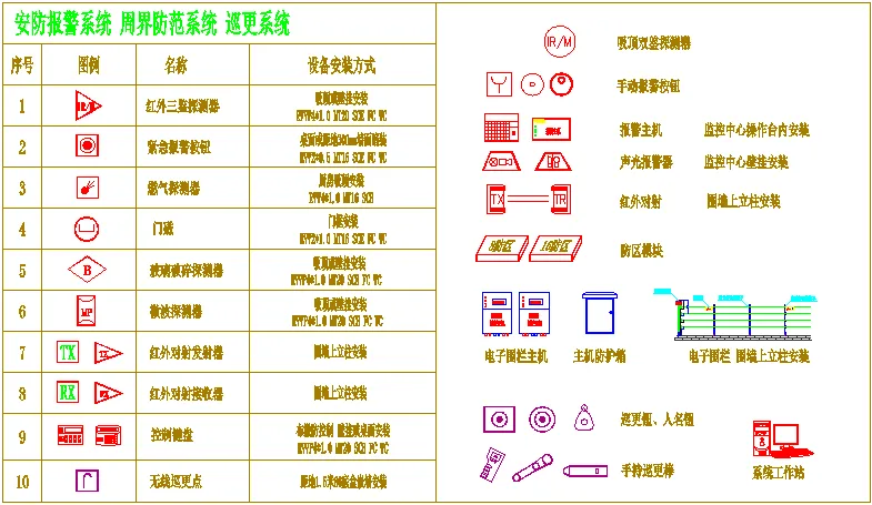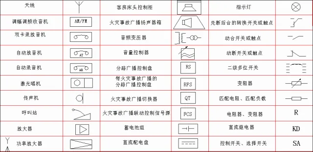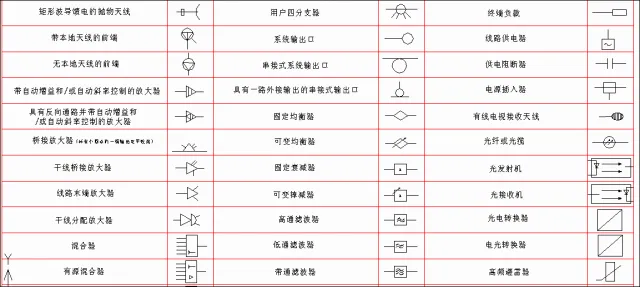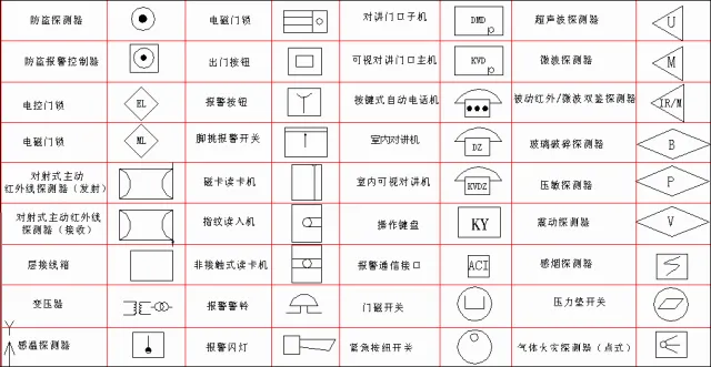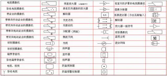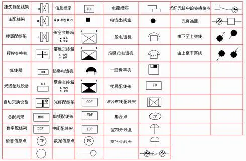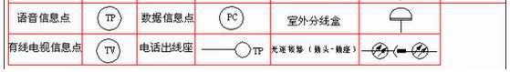 弱电一般是指直流电路或音频、视频线路、网络线路、电话线路,直流电压一般在36V以内。家用电器中的电话、电脑、电视机的信号输入(有线电视线路)、音响设备(输出端线路)等用电器均为弱电电气设备。符号是指具有某种代表意义或性质的标识,来源于规定或者约定俗成,其形式简单,种类繁多,用途广泛,具有很强的艺术魅力。而弱电符号则为弱电工程术语的简洁表达方式,为日常表达图纸的设计提供标准支持。(注:点击图片可以保存)