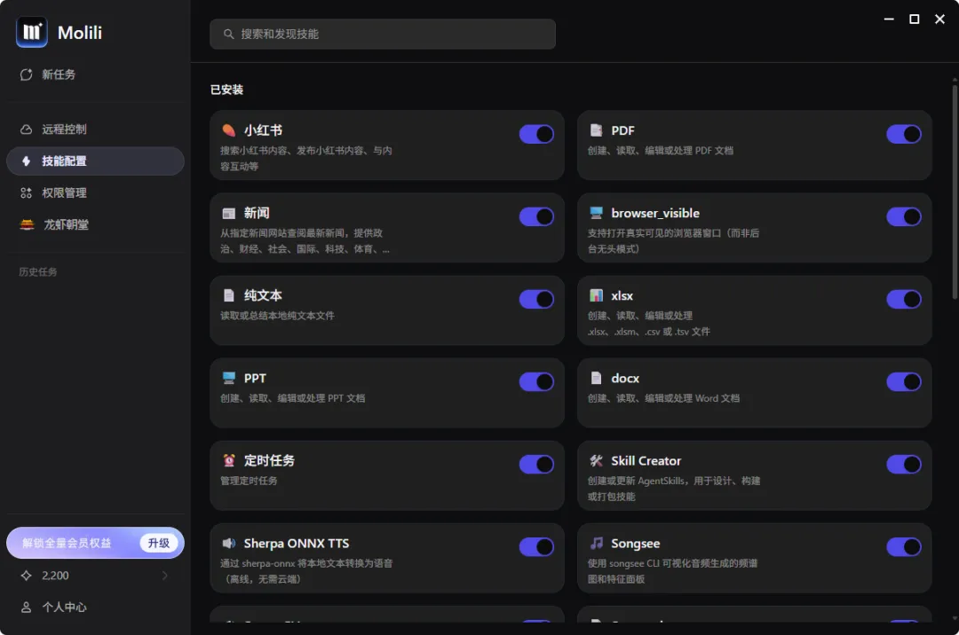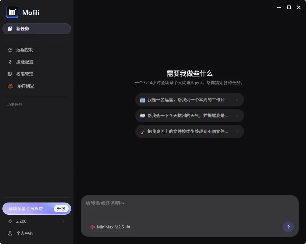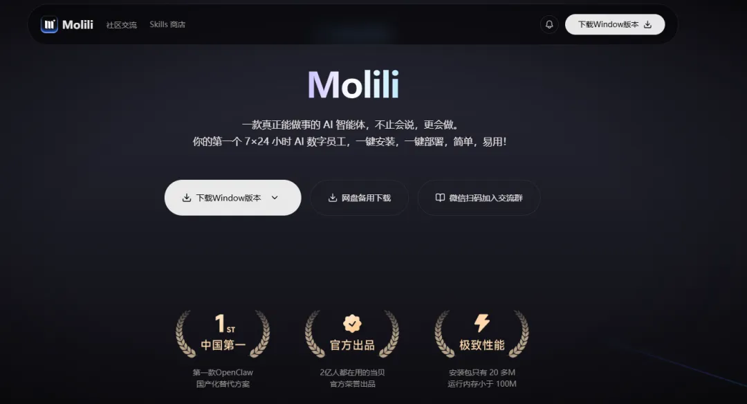 用过国外原版OpenClaw的朋友可能知道,那玩意儿功能是强,但门槛也是真不低。一堆英文文档和指令,看着就头大。Molili最让我舒服的一点,就是它彻底“汉化”了。