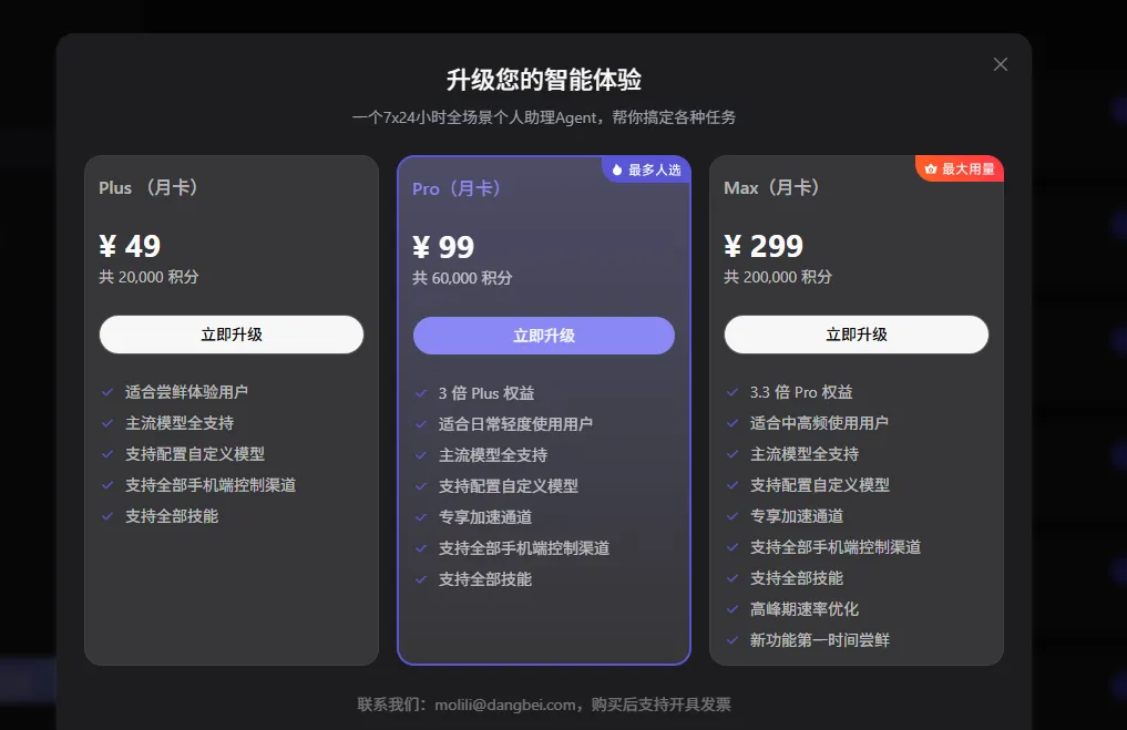 当然,目前不用心疼钱的小伙伴,Molili提供了套餐升级体验,放开手去折腾。