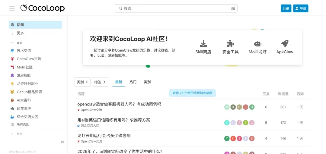 社区里面有OpenClaw等平台的技能/插件开发讨论,各类AI工具和框架的安装、配置指南,对各类AI模型进行使用体验和性能评测。覆盖了AI技术趋势、职业发展、学习路径等大家比较关注的话题。