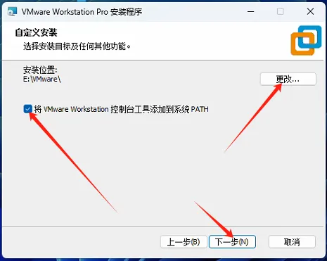 第7步、更改选择自己想要安装的位置然后勾选将 VMware Workstation控制台工具添加到系统PATH,后点击下一步