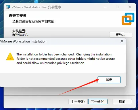 第8步、因为更改了安装位置,会弹出下面这个对话框直接点确定