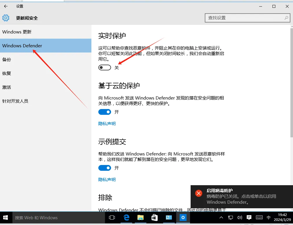 3、这时候需要再“设置”>"更新和安全"中关闭【实时保护】