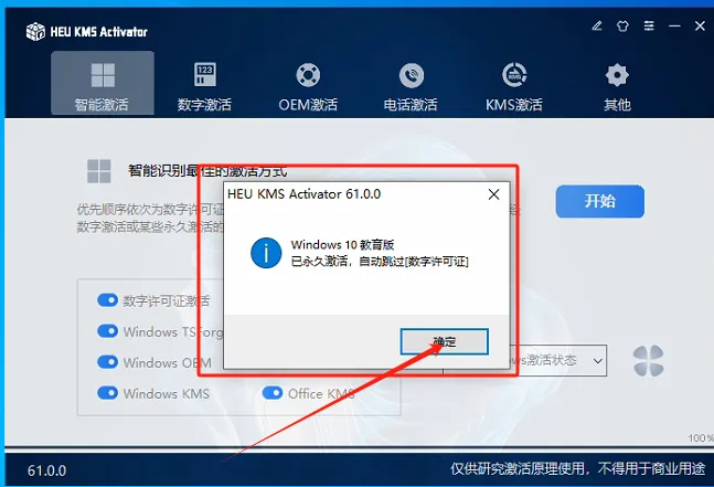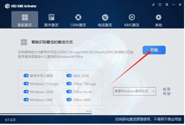 4、然后打开下载的HEU_KMS_Activator_v61.0.0文件,然后点击开始