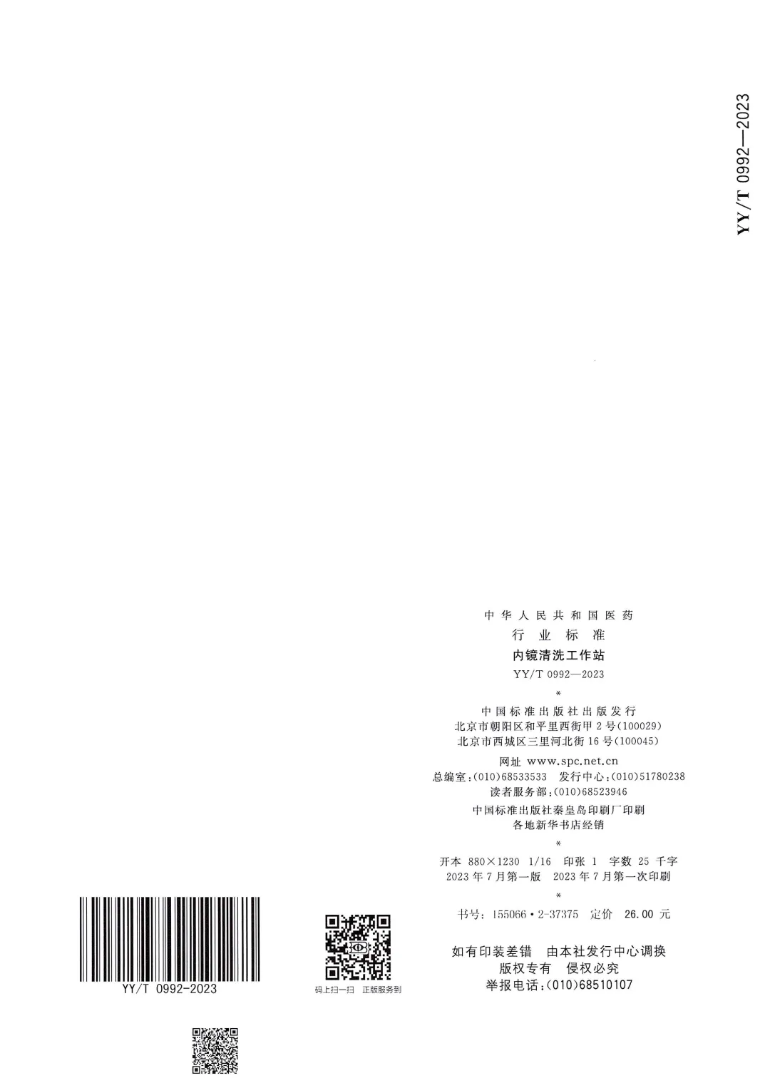 扫描下方二维码下载 YY/T 0992—2023 《内镜清洗工作站》PDF原文
