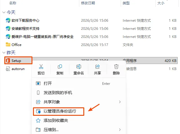 3.解压后,找到文件夹中的setup文件,右键以管理员身份运行安装 | |