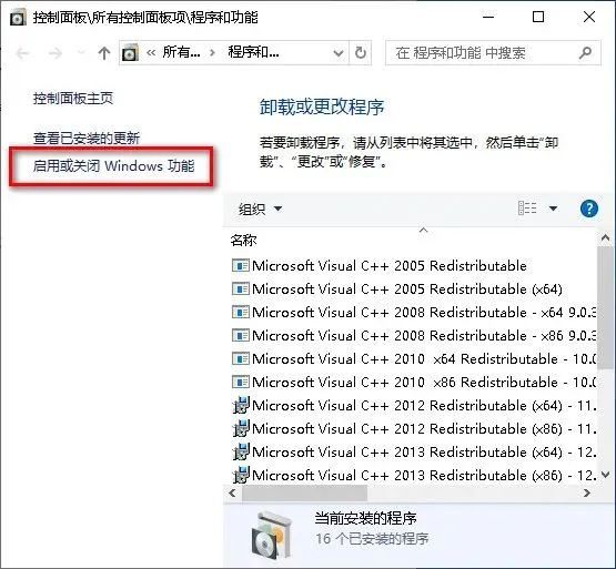 点开“启用或关闭Windows功能”。